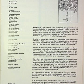 A programme for the Sunday April 12th 1992 Show Stoppers fundraiser at the Brighton Dome raising funds for those in the Brighton/Hove area with HIV/AIDS.