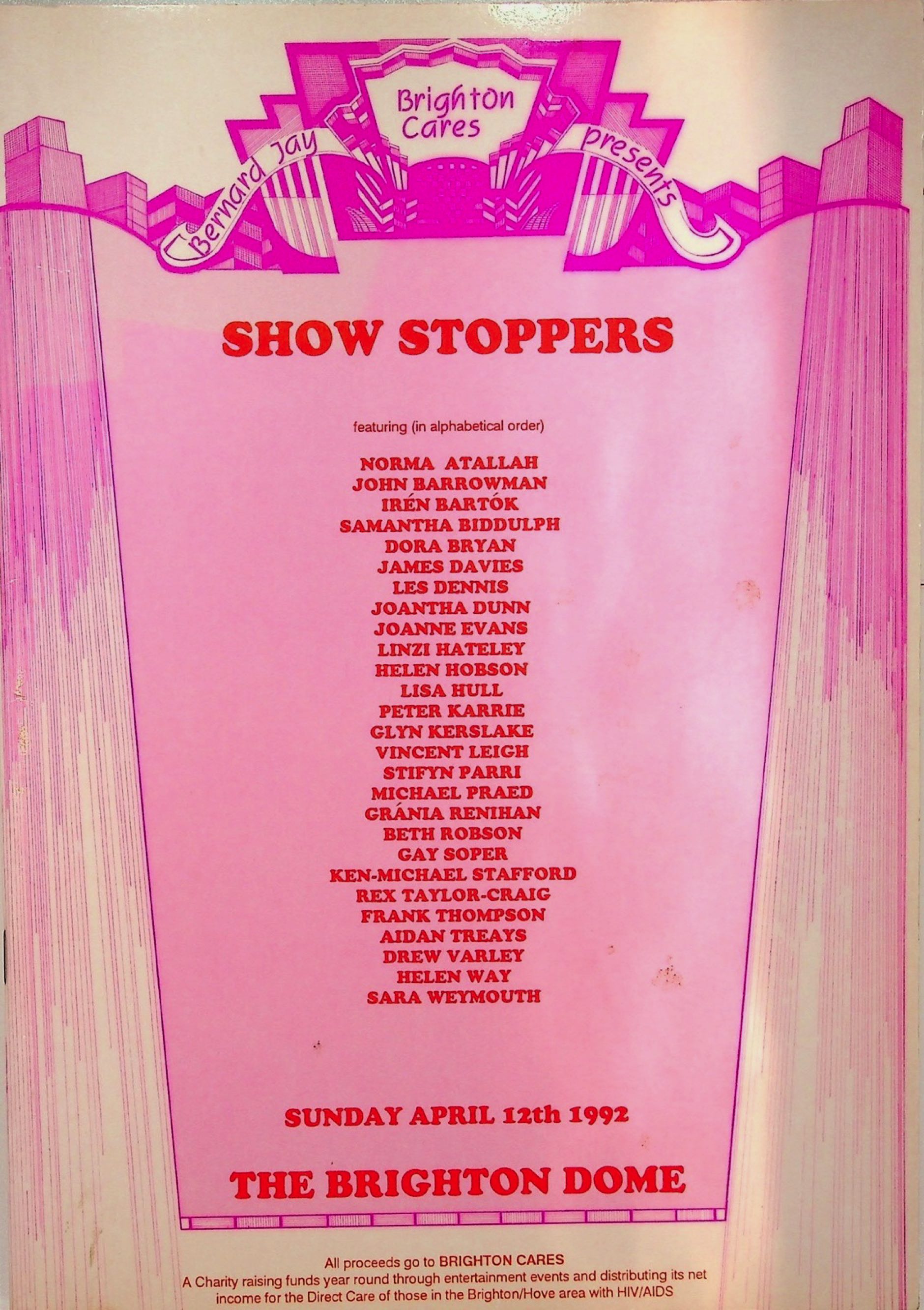 - Brighton Cares presents Show Stoppers, 12 April 1992