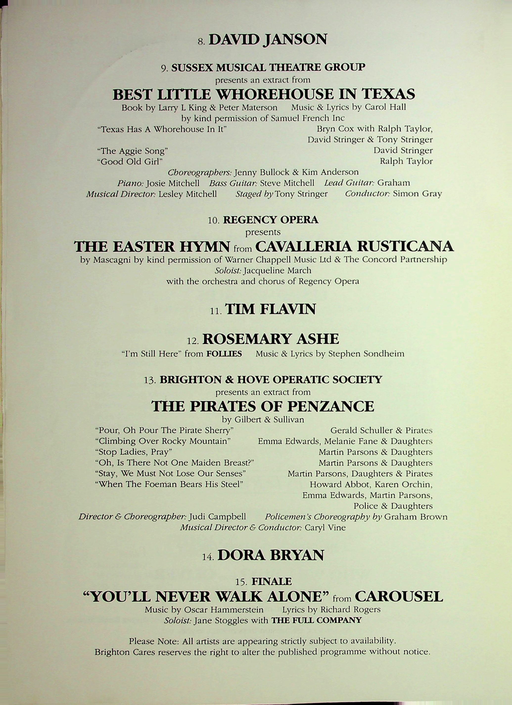 Brighton Cares presents You'll Never Walk Alone, 24 January 1993