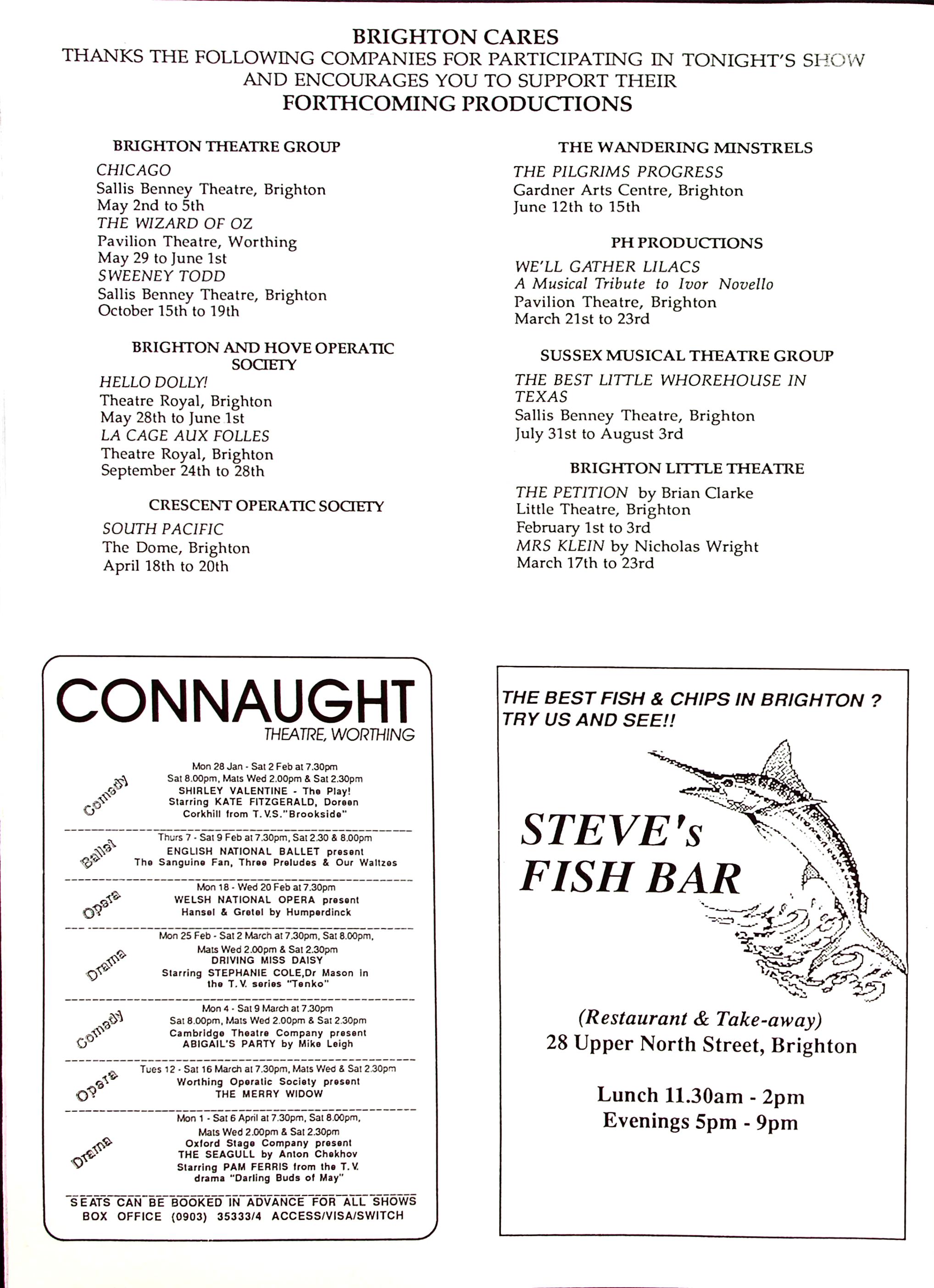 - Brighton Cares II If Love Were All A Musical Revue, January 27th 1991