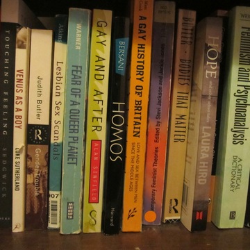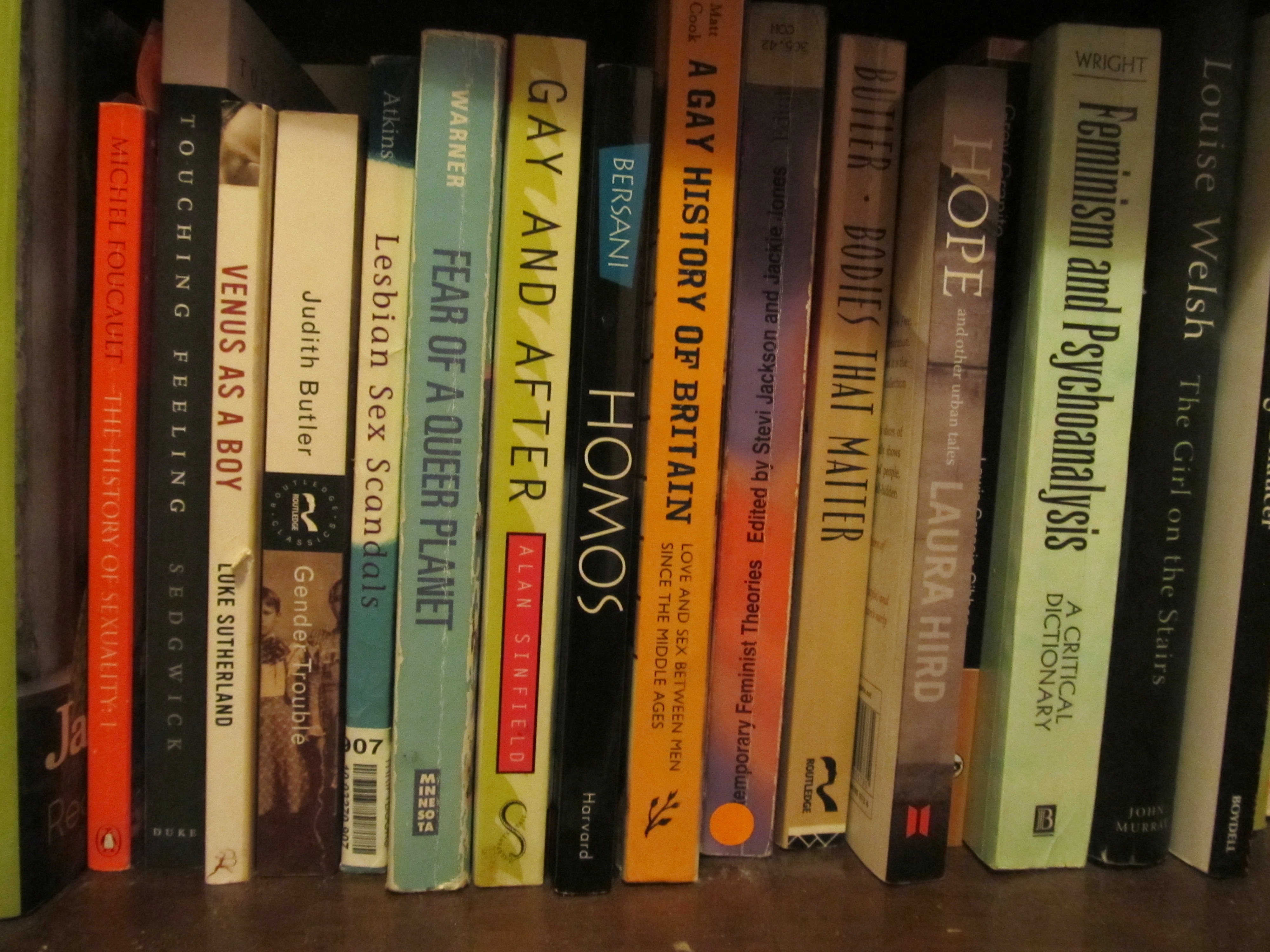 2. This image captures a range of books exploring gender studies and queer theory, including works by Judith Butler, Michel Foucault & Alan Sinfield.